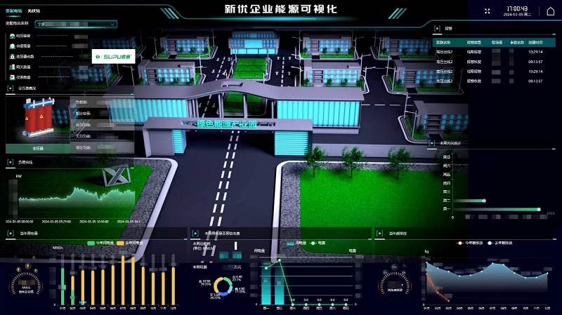 數(shù)據(jù):為該公司定制了企業(yè)級(jí)的能源數(shù)字可視化大屏,通過(guò)大屏,該企業(yè)可以直觀的看到廠區(qū)的變壓器實(shí)時(shí)情況以及年度同比用電趨勢(shì)及光伏發(fā)電量。