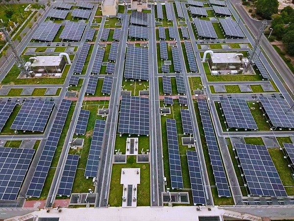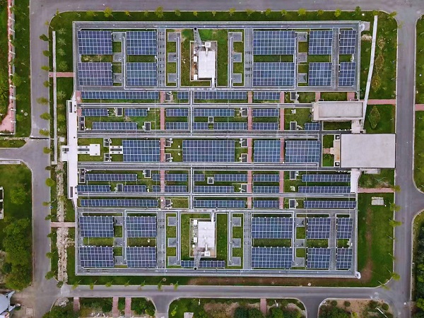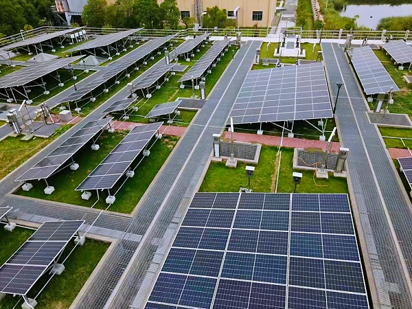 此清潔能源項目位于污水處理廠區(qū)內(nèi),總?cè)萘繛?55.32KW,采用自發(fā)自用,余電上網(wǎng)模式。在建筑風(fēng)貌與自然環(huán)境高度協(xié)調(diào)的背景下,遵循原有建筑風(fēng)格的原則設(shè)計,不用架設(shè)線路,不需挖掘地溝,安裝、遷移、維護較為方便,既節(jié)約電力也自然環(huán)保。