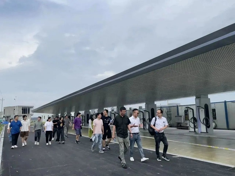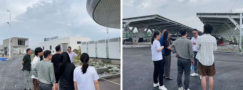 隨后,在總經(jīng)理蔣滿義的帶領(lǐng)下,一行人來到了即將完工的前灣新區(qū)“零碳示范驛站”參觀。該項目建設(shè)面積約4萬平方,是以“光儲充”為核心的微電網(wǎng)項目,項目完工后,將成為全球首個單體最大“零碳示范驛站”,在解決周邊企業(yè)停車難、充電難的同時,實現(xiàn)了讓新能源汽車完全用上綠色電源的愿景。
